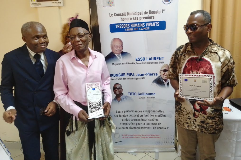 Un Trésor Humain Vivant est une personne reconnue pour son très haut niveau de connaissances, d’expériences, de savoir-faire, et de compétences liés au patrimoine culturel immatériel Spécifié dans : La langue, la littérature, la musique, le chant, la danse, et bien d’autres pratiques liées à la culture locale, et qui fait tout pour pereniser ce qu’elle fait. Le Conseil Municipal de Douala 1er a honoré ses 1ers Trésors Humains Vivants, dans la Journée de Jeudi 02 Novembre 2023, par un événement organisé par ledit conseil à la mairie de Douala 1er. Les trois bénéficiaires de cette distinction innovante qui vise à valoriser les acteurs majeurs du patrimoine culturel Sawa : Laurent Esso, Ministre de la Justice du Cameroun, l’artiste Musicien Toto Guillaume et Dikongue Pipa Jean Pierre, Cinéaste.